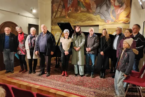 »Gustl je aktiven ustvarjalec, ki nam je znan predvsem po preoblikovanju lesenih korenin v živalske in človeške figure. Zadnje čase pa se izraža s slikovitimi odsevi v vodi, ki jih ujame v objektiv fotoaparata. Poleg likovnega ustvarjanja ga zanima vse, tudi zgodovina kraja, in ima v rokavu polno zanimivih zgodb. Piše tudi iskrive pesmi, ki jih je zbral v svoji pesniški zbirki z naslovom Bodice,« je govornica napovedala tokratnega interpreta njegovih pesmi Matica Eržena. Za glasbeni program večera pa je poskrbel učenec Glasbene šole Škofja Loka Jošt Vidergar, ki je na klavir zaigral skladbe J. Haydna, P. Kopača in F. Chopina.
