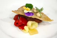 Po drugi topli predjedi je prišla na vrsto glavna jed, za katero sta poskrbela Gašper Kordež (Restavracija Tabor) in Aleš Tavčar (Gostišče Draga). Zvezda njunega krožnika je bila zorjena tunina. Marko Švalj iz Restavracije Šobec pa je tokrat poskrbel za sladico, ki jo je poimenoval Robida in malina – potegnita me kvišku … Lahkotnost ravno pravih kombinacij in ne presladkih okusov, postreženih v kozarčku, je presenetila.
