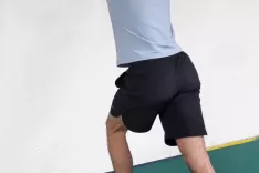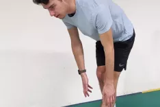 3. vaja – predklon na eno nogo: Pri tej vaji bomo raztegnili zadnji del stegna. Vajo izvedemo stoje, in sicer tako, da eno stopalo postavimo malo pred drugo na peto. Stojno nogo rahlo pokrčimo, drugo pa iztegnemo. Z rokami se lahko tudi opremo na stegno iztegnjene noge.