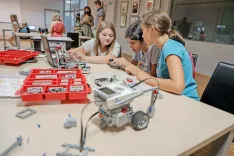 »Dekleta so skozi igro spoznala poenostavljene principe programiranja,« je pojasnil njihov mentor Karel Cerovšek in razložil, da so iz lego kock najprej sestavile robote, nato pa so jih sprogramirale, da so opravljali določene naloge, recimo s pomočjo senzorja vozili po ravni črti. »Čeprav je na videz vse zelo preprosto, pa se veliko naučijo,« je poudaril Cerovšek. Desetletna Neža nam je tako navdušeno pokazala robotsko roko, ki jo je izdelala skupaj s prijateljicami. »Računalništvo me zanima, v lanskem šolskem letu sem si ga v šoli izbrala tudi za izbirni predmet.« Prav s tovrstnimi delavnicami želijo tudi dekletom dati priložnost, da se seznanijo s poklici, za katere sicer velja, da zanimajo v glavnem fante, kot je recimo tudi programer, je pojasnil Cerovšek. »Zelo dobro je zato, da so na delavnici samo punce, saj jih sicer fantje kar odrinejo, dekleta pa so se med sabo povezala in sodelovala.« Dvanajstletna Tilka se je delavnic udeležila na pobudo očeta, ki je prav tako programer. »Zdelo se mu je, da bi bilo lahko zanimivo, in prav je imel,« je zatrdila, ko se je skupaj s prijateljicama Laro in Brino posvečala robotski roki. Cerovšek jih je še pohvalil, da so vse zelo navdušene in takoj vse razumejo.