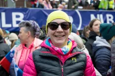 Darja Sever, Logatec: »Že veliko let hodimo v Planico, vsako leto. Pridemo iz spoštovanja do tega športa, do skakalcev. Res so izjemni, zame so heroji. Ambient v dolini pod Poncami je izjemen, prav tako tudi vzdušje. Danes je še posebno veselo. Ob uspehih naših skakalcev je posijalo še sonce. V Planico vsi pridemo za isto stvar in to je lepo.« / Foto: Primož Pičulin