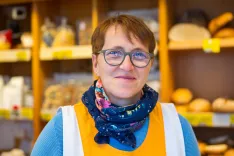 Staša Rehbergar, Zgornji Brnik: »V pekarni, kjer delam, prodamo veliko polnozrnatega kruha. Moški imajo raje belega, ženske polnozrnatega. Doma imam svoj vrt. Vzgajam skoraj vse: fižol, kumare, buče, krompir, paradižnik, špinačo, papriko, zelišča za čaj ... Za ozimnico shranim buče, krompir. Skrinja je polna.« / Foto: Primož Pičulin