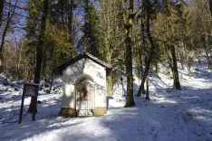 Vzpon se začne po precej strmem kolovozu, a naj povem že na začetku, da tega kolovoza ni prav veliko. Ko ga prehodimo, kolovoz postane udobna planinska pot, ki se zlagoma vzpenja. Zavije levo in se v daljšem prijaznem vzponu povzpne do kapelice sv. Neže, ki je del t. i. Nežine poti. Nad kapelico pot zavije desno in se malce strmeje vzpne. Vzpon je ves čas zmeren in prijeten, poteka skozi večinoma bukov gozd in je pravi balzam za dušo. Pot vijuga skozi gozd, in ko zagledamo nad seboj oddajnik z vrha Kuma, se nam z desne priključi pot iz Radeč in Zidanega Mosta. Na tem mestu tudi stoji kapelica sv. Jošta.