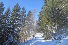 S Planine Javornik sestopimo/odsmučamo/odkrpljamo po kolovozu nazaj proti Domu pod Storžičem. Zimska idila nas je tudi tisto soboto spremljala vse do Javorniškega prevala, od koder po prej znani poti vzpona sestopimo do Doma pod Storžičem, potem pa verjetno ulovimo še kakšno sneženo »flanko« za uživaški sestop. In že smo pri jeklenem konjičku.