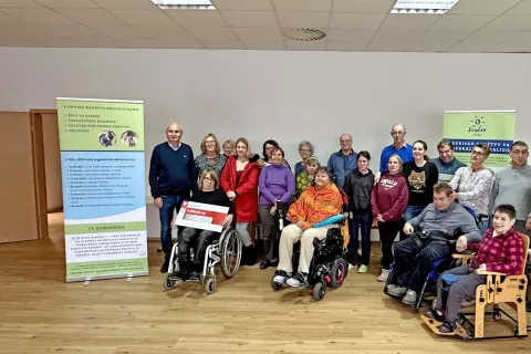 Zavarovalnica Triglav je Sončku, gorenjskemu društvu za cerebralno paralizo, omogočila nakup posebej prilagojenega terapevtskega vozička. / Foto: Peter Šalamon