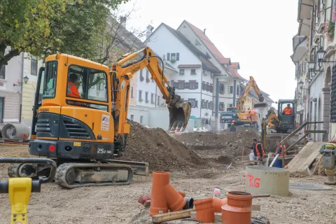 Ne dež ne megla ne mraz ne ustavljajo del na Mestnem trgu v Škofji Loki, ki so se začela februarja letos. Prenova bo predvidoma končana poleti prihodnje leto. Do takrat pa naj tisti, ki živijo, delajo ali imajo opravke na Mestnem trgu, le še malce potrpijo in raje občudujejo, kako spretne roke delavcev in tudi elegantne roke bagrov pridno zaljšajo podobo mestnega jedra srednjeveške lepotice.