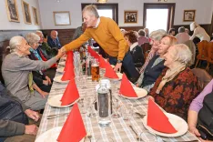 Skoraj štirideset občanov, starih devetdeset in več let, pa se je ravno tako v četrtek zbralo v tradicionalni gostilni Kunstelj v Radovljici, kamor jih je povabilo domače društvo upokojencev. Razveselili so se glasbene dobrodošlice mojstra na harmoniki Tomaža Cilenška in pozdrava župana Cirila Globočnika, ki je dejal, da so takšne »grče«, čili in polni energije, zagotovo tudi zato, ker je Radovljica prijeten kraj, v katerem je lepo biti doma. Sledili so živahno kramljanje ob kosilu, priložnostna darilca in za konec še nastop folklore iz Lesc.