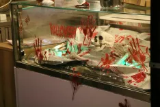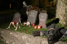 Anže Tomšič in njegova ekipa iz Grajske kavarne Škofja Loka sta na noč čarovnic poskrbela za svoj videz, vsak kotiček kavarne in njene terase pa je bil prežet s srhljivimi detajli. Okostnjaki, trupla, zavita v črne plastične vreče, so visela s stropa kavarne, na tleh je bil še svež obris trupla, dvoje trupel v vrečah je čakalo, da nekdo prime za lopato in ju zagrebe na bližnjem vrtu. Morda pod vrtnico, ki raste ob grajskem stolpu. Po zraku je krožil vonj po dimu ter skrivnostnih napojih, na glavnem žaru pa se je vrtelo nekaj, česar raje ne bi razkrivali ...