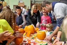 Organizatorji so pripravili kar tristo buč, namenjenih izrezovanju. / Foto: Tina Dokl