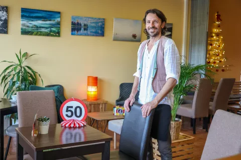 Alen Joy je praznoval petdeseti rojstni dan, a pravi, da se počuti veliko mlajšega, kot dejansko je. / Foto: Tina Dokl