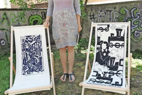 V projektu Nitne strukture x Kranj se študenti sprašujejo, kako povezati vezenje z arheologijo in zgodovino Kranja, z razvojem arhitekture in Plečnikom, s kulturo, splošnim tehnološkim napredkom in s posebnostmi posameznih tekstilnih obrti, ki so prerasle v ogromne tovarne. V nadstropju navduši stol iz lesa in bombažne niti z naslovom Plečnik je udoben Marije Okršlar in Lenarta Šolarja, za katerega sta našla navdih v slepih Plečnikovih arkadah nad stopniščem z vodnjakom. Isti motiv je k ustvarjanju stola Ujeti v Kranju spodbudil tudi Klaro Kališnik in Ano Križnar, ki sta pri tem uporabili kovinski stol, volnene niti, bombažno tkanino in pleksi steklo.