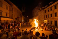 Predstava Trol je po definiciji KD Priden možic t. i. kurjaža, zvrst uličnih ognjenih predstav, ki vsebuje največ ognja. / Foto: Primož Pičulin