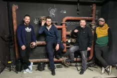 Z leve: Matic Sterle, avtor videa Kamnik 2077, Una Crnek, protagonistka filma POTS – v bitki z gravitacijo, ter Matic Poropatič in Blaž Juvan, ustvarjalca filma Ostri vrh / Foto: Tina Dokl