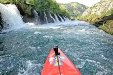 Naslednji kraj, kjer sem se ustavil, je blizu Mostarja. Tam se v Neretvo izliva reka Buna. Neretva je tu izdolbla do 14 metrov globok in približno sedem metrov širok kanal z dolžino 850 metrov. Vanj se preko tri metre visoke stopnje po skoraj celi dolžini kanala zliva reka Buna z res številnimi slapiči. Ta fenomen sem si najprej skrbno ogledal po celi dolžini in se takoj odločil: jutri bom to preveslal. Parkiral sem tik ob kanalu in prenočil v avtu. Zgodaj dopoldne, ko se je sonce prikazalo iznad hriba, pa akcija: kajak sem odvlekel na začetek kanala in zaveslal. Veslati pravzaprav niti ni bilo treba, ker je reka zelo hitra; samo za smer in ravnotežje je bilo treba skrbeti. S svoje leve pa sem užival v pogledu na brezštevilne slapove, ki jih ustvarja Buna. Sicer nezahtevno, vendar v estetskem smislu eno mojih najlepših veslanj! O smeteh, večinoma tekstilu, ki visi po skalah ob kanalu, pa raje ne pišem …