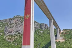 Letos bom nadaljeval tam, kjer sem takrat končal. Sledi nezahteven del z neverjetno lepimi tolmuni in visokimi konglomeratnimi stenami kanjona, ki se počasi razširja in niža. Na nekem mestu ga prečka avtocestni viadukt Moračica, ki so ga Kitajci zgradili pred petimi leti. Pogled nanj človeku vzame dih. Eleganten in gigantski. Trije stebri so visoki 158 m, med njimi pa je 190 m razpona! Črnogorci so na najvišji steber s ponosom namestili ogromno črnogorsko zastavo.