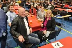 Alpski večer že dolgo ni zgolj glasbeni dogodek, ampak druženje ljudi različnih starosti in narodnosti, ki se povezujejo ob zvokih narodnozabavne glasbe. Številni obiskovalci so v dvorani pritegnili pozornost s svojimi dirndli, irharicami in drugimi značilnimi oblačili, kar je še dodatno popestrilo že tako živahno vzdušje. Med stalnimi obiskovalci je tudi Julijana Keuschnigg, Bohinjka, ki že 35 let živi v Avstriji. »Vsako leto pripeljem za dva avtobusa obiskovalcev iz Tirolske, kjer so naši ljudje še vedno zelo navezani na glasbo, ki jo je svetu predstavil predvsem Slavko Avsenik,« je povedala Julijana Keuschnigg, ki na Alpski večer prihaja že 12 let in vsako leto pripelje med osemdeset in sto ljudi, predvsem oboževalcev Ansambla Roberta Zupana. »Alpski večer je res posebna prireditev. Obiskovalci se vedno znova vračajo, ker cenijo kakovostno glasbo in domače vzdušje,« je še dodala. Helena Rakovec iz Struževega je na Alpski večer prišla popolnoma nepričakovano. »Moji domači so me presenetili ob rojstnem dnevu in me pripeljali na Alpski večer, tako da praznujemo. Ne vem, kaj lahko pričakujem, ampak zdi se mi, da bo super večer – drugače me ne bi pripeljali,« je dejala. Silva in Bine Šketa iz Braslovč sta bila na Alpskem večeru prvič. »Prišla sva zaradi vnukov, ki sodelujejo v Ansamblu s'pod Triglava. Sicer pa smo že več let razpravljali o tem, da bi prišli. Končno smo tukaj – veseli, polni pričakovanj. Verjamemo, da bo super večer,« sta povedala.