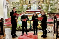 Posebno svežino in energijo je dogodku dodal gostujoči vokalni kvartet Šmir papir, ki je ob zboru zapel na prvih dveh koncertih. Sestavljajo ga štirje mladi pevci, ki prepevajo že iz šolskih klopi na Škofijski klasični gimnaziji. »Njihovo ime ima zanimivo ozadje. Šmir papir je namreč list papirja, ki je bil že uporabljen, a še vedno nosi potencial za nekaj novega. Ta simbolika se odraža tudi v njihovem glasbenem izrazu,« je poudarila Mateja Arhar. Pevci kvarteta sicer radi nastopajo tudi na porokah, pri mašah in drugih priložnostih.