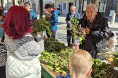 Mestni vrvež v Škofji Loki je bil v sobotnem dopoldnevu, obsijanem s soncem, še kako živ. Sprehajalci so bili navdušeni nad dogodkoma, ki sta potekala na Mestnem in Cankarjevem trgu. Pred cerkvijo svetega Jakoba so škofjeloški skavti izdelovali butaro velikanko, ki bo do velikega petka krasila pročelje cerkve. »Smrekovo deblo bomo okrasili z bršljanom, oljko, reso, forzicijo … Oljke so s Primorske, bršljan smo nabrali ob Sori, forzicijo pa na Kamnitniku, blizu skavtskega doma so veliki grmi. Na Sveto Barbaro smo šli po reso, pa šibe je bilo treba nabrati,« je razložila ekipa dobro razpoloženi skavtov, ki je izdelovala butaro velikanko. »Pred cerkvijo bo stala do velikega petka, ko bomo ob bdenju v skavtskem domu najprej zmolili križev pot, potem pa se prestavili pred cerkev, v soboto zjutraj bomo iz nje zakurili velikonočni ogenj.«