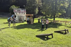 Pripravili so tudi pester zabavni del za staro in mlado – poleg točilnega pulta je ekipa zidarstva Božnar pripravila tudi ogromen peskovnik, v katerem so se otroci lahko igrali s tamkajšnjimi in svojimi igračami. Najmlajši so lahko v posebnem kotičku barvali pobarvanke, malo starejši otroci, pa tudi odrasli pa so se lahko poskusili v strelastiki, štrbunku, pomerili so se lahko v metanju žoge na poseben košarkarski koš, ki je združeval kar sedem košev. »Lahko rečem, da smo danes naredili dva dogodka, ki smo ju združili v celoto. Dan je družinsko zapeljan, zvečer pa prihaja veliki zaključek poletja v Poljanski dolini: veselica z Raubarji,« nam je povedal Jure Čufer z Zavoda Poljanska dolina.