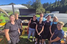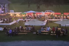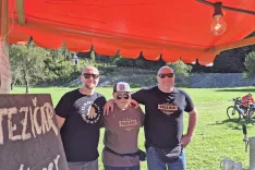 Karavana domačih pivovarn je postregla s šestimi vrstami piva, med njimi so bila tako lager kot kraft piva, za vse žejne je skrbela tudi ekipa Dvorca Visoko. Lokalni žar mojstri so pripravljali različno ponudbo hrane, kot so bili burgerji v mesni in vegeterijanski obliki, zanje je skrbela ekipa Pajzl burgerja, tokrat sta jo sestavljala Aljoša Vodopivec in Jure Biondič. Mitja Gantar s Kmetije Pr' Posečnk je z Malenskega Vrha v dolino pripeljal prekajevalnik oz. tako imenovani smoker, ki ga je izdelal sam. »Delal sem ga eno leto, ni ga tako enostavno narediti. (nasmeh) Najtežje je bilo uskladiti temperaturo, saj je zelo velik, temperatura pa mora biti usklajena. Bistvo tovrstne peke je, da se peče na čim nižjih temperaturah in da se dimi s kvalitetnim lesom, ki daje okus,« nam je povedal Gantar. Ekipa Kmetije Pr' Posečnk je tako obiskovalce razvajala z dimljenimi rebri, klobaso z zeljem pa tudi s hotdogi.