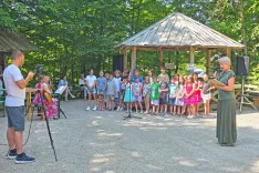 Prireditev v idiličnem okolju je odprl osnovnošolski zborček Škrjančki. / Foto: Špela Šimenc