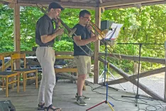 Odmevalo je v ritmih citer, klavirske in diatonične harmonike, flavte, kitare, pozavne, nekateri so zraven tudi zapeli. Kot gostja pevka Urška Gerbic, ki je zapela dve ljudski pesmi (Tri planike in Kje so tiste stezice) in Ditkino Ne bodi kot drugi. Imeli pa so tudi prav posebnega gosta, multiinstrumentalista Miho Škrlepa iz Mengša, ki je v družbi domačina Gabra Krumpestarja zaigral na pozavno (te se je začel učiti pred dvema mesecema!), sicer pa je skladatelj, igra še klavir, violončelo, kitaro ter razna tolkala in tudi poje.