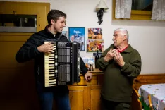 Seveda si ni mislil, da se bo to zgodilo v obliki presenečenja, ki ga mu je pripravil Peternel. Na praznični dan so namreč Janeza prijatelji odpeljali od doma, v tem času pa je k Bohinčevim prišel Sašo Avsenik. In ko so se vrnili domov, je odprl vrata in zaslišal se je zvok harmonike ...