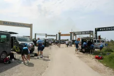 Start druge etape je bil v slikoviti in kar malo skrivnostni okolici Donjega Štoja na eni od plaž ali pa vhoda na več plaž, kjer smo lahko v miru parkirali kombije in so se kolesarji odpravili na novo dnevno dogodivščino. Za nekaj minut sem imela občutek, da smo na prizorišču, kjer snema Emir Kusturica, ali pa se bo od nekod pojavil Guy Ritchie s svojimi režiserskimi zamislimi, lahko pa se bodo zdaj zdaj izza vogala pripeljali kakšni hipijevski ljubitelji kajtanja.