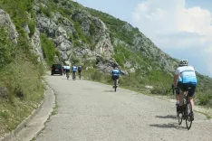 V preteklosti sem jo že doživela – sicer s sovoznikovega sedeža, a kolikor se spomnim, je takrat deževalo, panoramski razgledi so bili bolj kot ne zaviti v sivino, cesta je bila (dobesedno) »pobuškana«, polna lukenj. Kolesarji so stali ob cesti praktično na vsakem ovinku, na koncu je bilo uničenih zračnic za veliko vrečko.