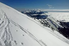 Od koče po travnatem pobočju po slemenu nadaljujemo do vrha Dovške Babe.