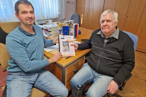Projekt in svoji zgodbi sta predstavila Darko Starič (levo), poslovni sekretar MDSS Kranj, in predsednik Emil Muri. / Foto: Maja Bertoncelj