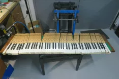 »Medtem ko se Benton ukvarja z visokocenovnimi klavirji, jaz pokrivam predvsem segment pianinov, ki so tudi cenovno dostopni širšemu krogu ljudi. Seveda še vedno sodelujemo in si znamo priskočiti na pomoč,« pojasnjuje Tomaž, ko mi razkazuje bogato zbirko orodja v delavnici in prenosnem kovčku. »Več mi pomeni ta kovček s prirejenim specializiranim orodjem kot pa kombi, s katerim pianine in klavirje razvažam naokrog,« pove mojster, potem ko se mi zdi, da je precej orodja podobnega tistemu, ki ga uporabljajo zobozdravniki.