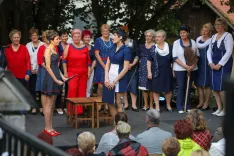 Nadaljevanje sobotne vrtne zabave so s svojo toaleto nostalgično pričarale članice Društva plesalk v tretjem življenjskem obdobju pod mentorstvom dr. Metke Knific Zaletelj. Plesalke so se ozrle v čas 50. in 60. let prejšnjega stoletja in na hudomušen način predstavile, tudi komentirale, kaj se je takrat pelo, plesalo, oblačilo in še kaj. Vključile so zanimive pripovedi in spomine Tržičanov na te čase, pripovedi obogatile z ljudskimi plesi, ki so bili takrat še živi, in jih prepletle s tistimi, ki so šele prihajali v modo. Bilo je pred 70 leti, čas mineva, zgodbe ostajajo … Tudi z odlično pevko Kristino Oberžan s skupino, ki je prijetno sklenila Poletno muzejsko noč pod zvezdami ...