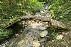 Razložil nam je, da je bilo po avgustovski ujmi leta 2023 to območje kar precej prizadeto, tudi potoku ni prizanesla. Teren je postal zahtevnejši. »Prečkanje potoka bi bilo lahko nevarno,« je dejal. »Tako sem tudi prišel na idejo o mostu, da so otroci lahko predvsem varno prečkali potok.«