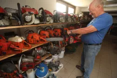 Sto trideset motornih žag, očiščenih pajkovih mrež (»Malo sem vseeno očedil prah pred vašim prihodom,« pomežikne Franc), je zares videti impozantno. Zbiratelj pove, da prihajajo iz Nemčije, Švedske, Združenih držav Amerike, Kitajske, Japonske in Rusije. Najbolj ga navdušujejo proizvajalci iz skandinavskih držav, »Husqvarna in Jonsered sta 'džeka' med njimi, sam jih uporabljam še kakih sedem, osem. Najljubša mi je Jonseredova, ki sem jo leta 1978 naročil v Bosni. V tistih časih je bilo težko dobiti 'štilerco' (motorno žago nemškega proizvajalca Stihl, op. a.), znanec mi je povedal, da v Sarajevu prodajajo 'jonseredke'. V Podnartu na pošti sem takrat plačal 430 mark in 180 jugoslovanskih dinarjev. Malo me je skrbelo, da iz tega naročila ne bo nič, a sem dobil vse, do zadnjega ključka in vijaka.« In 46 let stara motorna žaga še vedno deluje kot nova, mi pove.