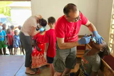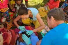 Eva Trpin Fortuna, zdravnica, zobozdravnica in specialistka maksilofacialne kirurgije, je bila pred letošnjim odhodom na Madagaskarju že dvakrat. Prvič je v dispanzerju misijona Ranomena, kjer je takrat deloval Janez Krmelj, leta 2004 tri mesece delala kot študentka petega letnika medicinske fakultete, leta 2007 pa kot mlada zdravnica še v centru Ampitafa, ki je takrat ravno dobro začel delovati. Center poleg osnovne in srednje šole sestavljajo tudi bolnišnica, porodnišnica in zobozdravstvena ambulanta. »Moja življenjska želja je bila peljati svojo družino na Madagaskar. Februarja letos je bil Janez Krmelj na letnem dopustu v Sloveniji. Srečali smo se in takrat je padla ideja, da bi ga obiskali, dokler je še tam. Marca smo kupili letalske vozovnice in začeli priprave na odhod. To ni bilo turistično potovanje, ampak smo šli tja delat,« pravi Eva Trpin Fortuna. Medicinsko odpravo so sestavljali še Evin mož Gašper, zobozdravnik in specialist oralne kirurgije, njunih šest otrok Peter, Martin, Matevž, Andrej, Nina in Maša ter Erik Mihelj, diplomirani zdravstvenik z intenzivne enote Infekcijske klinike ljubljanskega UKC. Pozneje se jim je pridružil še sorški župnik Jože Čuk.