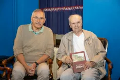 Urednik knjige Tone Konobelj in dolgoletni zbiratelj razglednic Dušan Prešern / Foto: Nik Bertoncelj