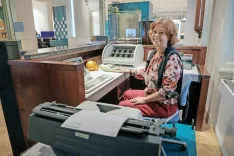 Na nasprotnem koncu muzeja je vsaj sedemdeset let mlajši originalni »šalter«, kakršnega poznamo iz časa socializma. »Mali ekran računalnika IBM 4700 spredaj, ob strani pa tipkalni stroj, strojček za preverjanje ponaredkov in morje obrazcev, za katere smo včasih delali kopije v štirih izvodih,« se spominja Irena Čeh in pove, da je prav za tako mizo sedela v svojih bančnih začetkih. »Delo za obema okencema se kljub mnogim desetletjem razlike ni kaj dosti spremenilo, stranke so še vedno morale prihajati v banko, stati v vrsti na storitev … Z začetkom razvoja bankomata leta 1950 se razvoj bančnih praks obrne v povsem novo smer, bankomat nam je namreč na razpolago 24 na dan in vse dni v tednu.«