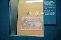 Bančništvo v Sloveniji beležimo od leta 1820, ko se je razvila prva finančna institucija Kranjska hranilnica, ki je bila sicer nemškega porekla. Bila je druga takšna denarna institucija v takratni habsburški monarhiji, takoj za Erste Bank na Dunaju. Del razstave, ki bi mu lahko rekli kar slovenski, se začne s predstavitvijo valut, ki so v zadnjih dvesto letih veljale na ozemlju današnje države. Zamenjali smo šest držav in devet denarnih valut. »Kadar to pojasnjujem obiskovalcem iz tujine, se temu zelo čudijo.« Za valute v vseh posameznih državah so na ogled primerki bankovcev in kovancev, od goldinarjev, ki so bili na našem ozemlju v veljavi večji del 19. stoletja, do tolarja in evra v samostojni Sloveniji. Ta del razstave so pripravili sodelavci iz numizmatičnega kabineta Narodnega muzeja Slovenije.