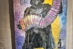 Občinstvo, ki se zanima za likovno umetnost, bo po slogu zagotovo začutilo na slovenski likovni sceni enega vidnejših ustvarjalcev, dobro znanega slikarja, ilustratorja, avtorja animiranih filmov in pedagoga. Omenjeni »harmonikarski« sklop – verjamemo, da jih je kustos, umetnostni zgodovinar Boštjan Soklič, prav zaradi njihove izpovednosti in močnih kontrastov med instrumentom in »muzikanti« postavil v prvi prostor – je del cikla z naslovom Glasba je zvok sveta, ki ga Erič od leta 2022 naprej ustvarja, razvija in dopolnjuje z vedno novimi motivi.