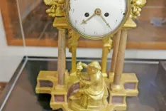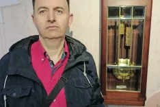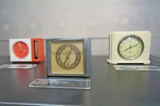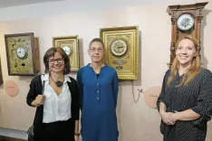 »Ure sicer ne delujejo, razen ene, ki so jo prav za namen razstave popravili v urarstvu Geringer v Kranju. Ura je iz leta 1914, dolgo časa pa je bila po oznaki sodeč v rabi v občinskih prostorih v Kranju,« izvem o stenski uri, ki je pravkar odbila ob polni uri. Uro, imenovano »dunajski regulator«, podrobneje predstavi urarski mojster Dejan Geringer: »Uro so na zunaj uredili in očistili v muzeju, v naši delavnici pa smo se lotili urnega mehanizma. Popolnoma smo ga razstavili, ga očistili, na novo spolirali osi, nastavili anker in zamenjali vrvice. Prvotno so bile te iz naravnega črevesa, danes jih običajno zamenjamo z laksom.« Ljudje pogosto v njihovo delavnico prinesejo stare ure, da bi jih ponovno »obudili«. Na vprašanje, ali je bilo po toliko letih nedelovanja moč uro tudi natančno nastaviti, pa odgovori, da je ura zelo točna, nastavljena po posluhu. »Ure se vedno regulirajo na uho,« mi pojasni Greiner in doda, da omenjena lepo tiktaka, ob vsaki polni uri pa še bije tolikokrat, kolikor je ura, na pol ure pa enkrat.
