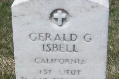 »Takrat me je začelo zanimati, kdo je bil mladi pilot, katerega življenje se je končalo v naših krajih, tako daleč od njegovega doma.« Začel je brskati po dokumentih, stopil v stik z ameriško ambasado, kjer so mu pomagali pri iskanju, in kmalu dobil izrezek iz časopisa, v katerem je bila objavljena osmrtnica, in fotografijo nagrobnega kamna, na katerem piše: Gerald G. Isbell, Kalifornija, 27. marec 1919 – 5. april 1945.