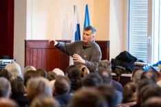 Justinovo potopisno predavanje ni bilo zgolj niz fotografij vrhov in oddaljenih himalajskih poti, temveč iskreno in poglobljeno razmišljanje o smislu življenja. Poslušalcem, bila jih je polna dvorana, je pripovedoval, da imamo doma pogosto preveč materialnih dobrin, a hkrati premalo hvaležnosti za to, kar imamo, medtem ko je v Nepalu redko videl bogastvo v denarju, a skoraj vedno bogastvo v ljudeh.