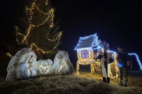 Jaslice na skalah v Sorici je blagoslovil soriški župnik Mirko Turk. / Foto: Klara Mrak