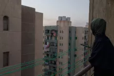 Ena prvih vaj, namenjenih preboju mentalnega zidu devetih udeležencev delavnic, je bila vaja interpretacije fotografije, ki sem jo posnel na stopnišču ene izmed stolpnic le nekaj ur po prihodu v El Khayalo. Lahko pa bi bila posneta v kateri koli, saj so pogledi navzven identični v vseh 42 zgradbah.