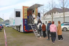 Šofer David Kren, ki sicer prihaja iz Novega mesta, je predstavil mobilno kuhinjo in kako so videti dnevi, ko so na poti. So dokaj dolgi, kot se je izrazil. »Dan se nam začne nekje ob 7. uri, končamo pa po navadi okrog enajstih zvečer.« Od doma je kar 160 dni na leto. Smeje je dodal, da je sicer veliko več kot le šofer, edino kuhar pa ni.