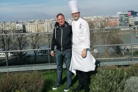 Niko Tavčar s kuharskim mojstrom na zeliščnem vrtu šole Cordon Blue v Parizu / Foto: osebni arhiv