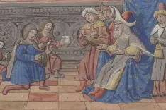 Ta podoba iz srednjeveškega rokopisa prikazuje, kako je Marca Pola leta 1274 v Šangduju sprejel veliki Kublajkan. / Foto: Wikipedija