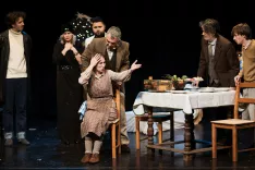 S prvo premiero v novi gledališki sezoni so na Loškem odru zaznamovali tudi življenjski jubilej, osemdesetletnico – kot sami radi v žlahtnem pomenu besede poudarijo – »hišnega režiserja« Matije Milčinskega. Izbrali so besedilo italijanskega dramatika Eduarda De Filippa Božič pri Cupiellovih, komedijo, kot jo označi avtor, v treh dejanjih, ki pripoveduje o vedno aktualni temi družinskih odnosov. Dan pred božičem je še vse drugače kot pa na božič, ko se družina zbere za isto mizo, in dan kasneje, ko se rešuje, kar se še rešiti da. Družina se namreč sooča z resnico o svojih odnosih in se začne zavedati, da morajo biti drug do drugega bolj strpni in pozorni, če želijo, da bo širša družina »uspevala«.