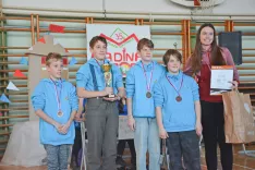 Drugič zapored so osnovnošolske državne prvakinje Planinske brihte iz PD Medvode (Sara Mis, Karin Jakša Jovanovski, Viktoria Ana Šušteršič in Manja Goslar) z mentorico Mojco Resnik. / Foto: Maja Bertoncelj